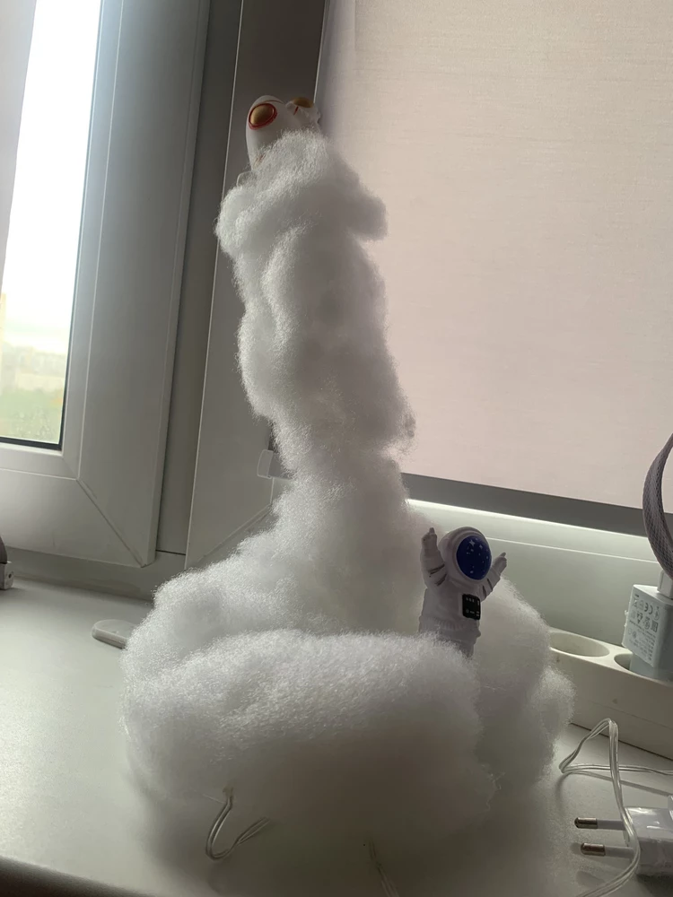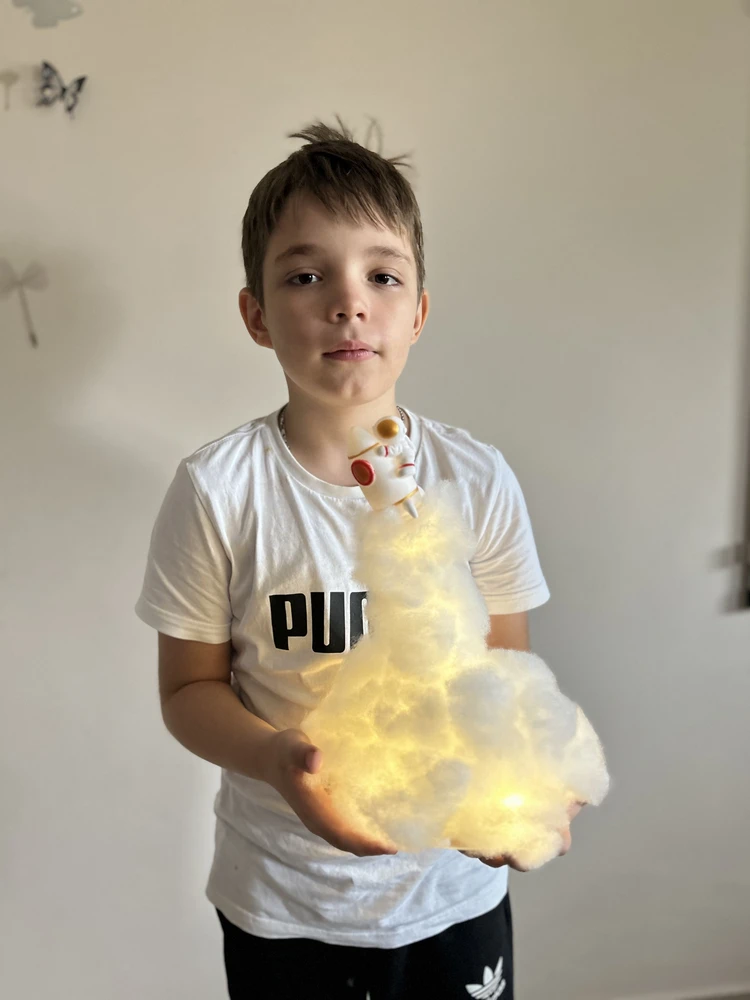 Нічник дитина зробила сама, нічого складного, потрібні тільки час та уява, також дитина додала свою іграшку космонавта у нічник, що підходить до композиції, тож рекомендую цей набір!